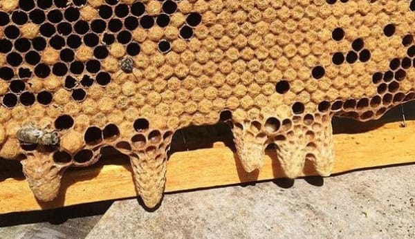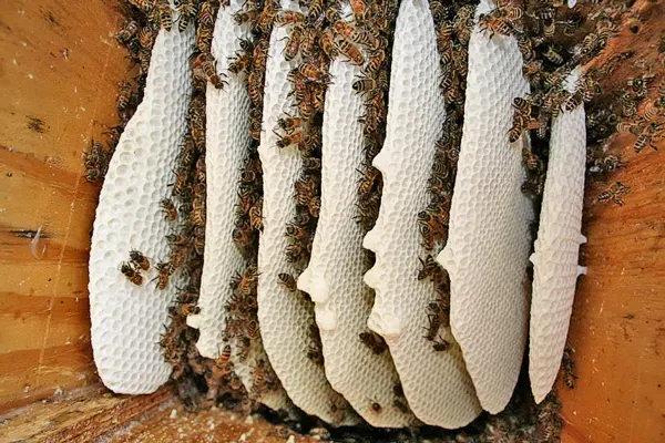 The foraging bees who have been collecting nectar and pollen receive the signal and spring into action. They become scout bees and begin looking for a new home. In the meantime, the hive prepares for the exodus by building uniquely shaped cells on the bottom of a frame known as "swarm cells". These cells are used for the development of a new queen, after the old queen leaves with 60% of the hive. Thus, the natural reproductive cycle for a colony of bees.